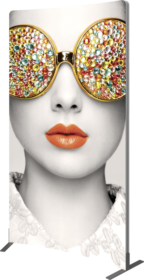 Vector Frame™ curved fabric banner 02 is a modern, extrusion-based fabric graphic banner display measuring 56.75"W x 94.74"H that combines 50mm aluminum extrusion frames with push-fit fabric graphics. Vector Frame Curved fabric banner 02 is a versatile single or double-sided banner, back wall, or interior display. Use as a concave or convex shape for increased versatility.