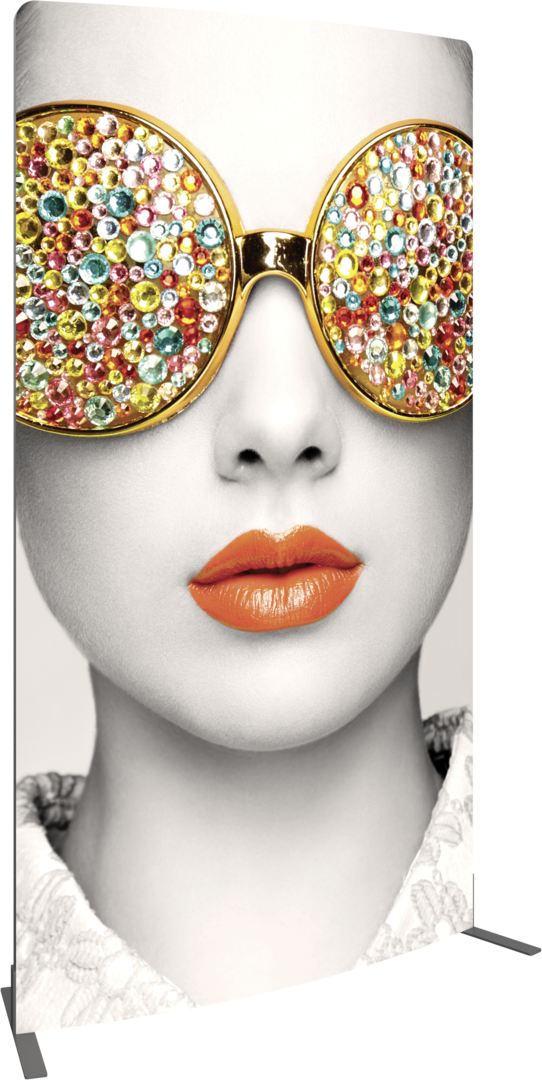 Vector Frame™ curved fabric banner 02 is a modern, extrusion-based fabric graphic banner display measuring 56.75"W x 94.74"H that combines 50mm aluminum extrusion frames with push-fit fabric graphics. Vector Frame Curved fabric banner 02 is a versatile single or double-sided banner, back wall, or interior display. Use as a concave or convex shape for increased versatility.