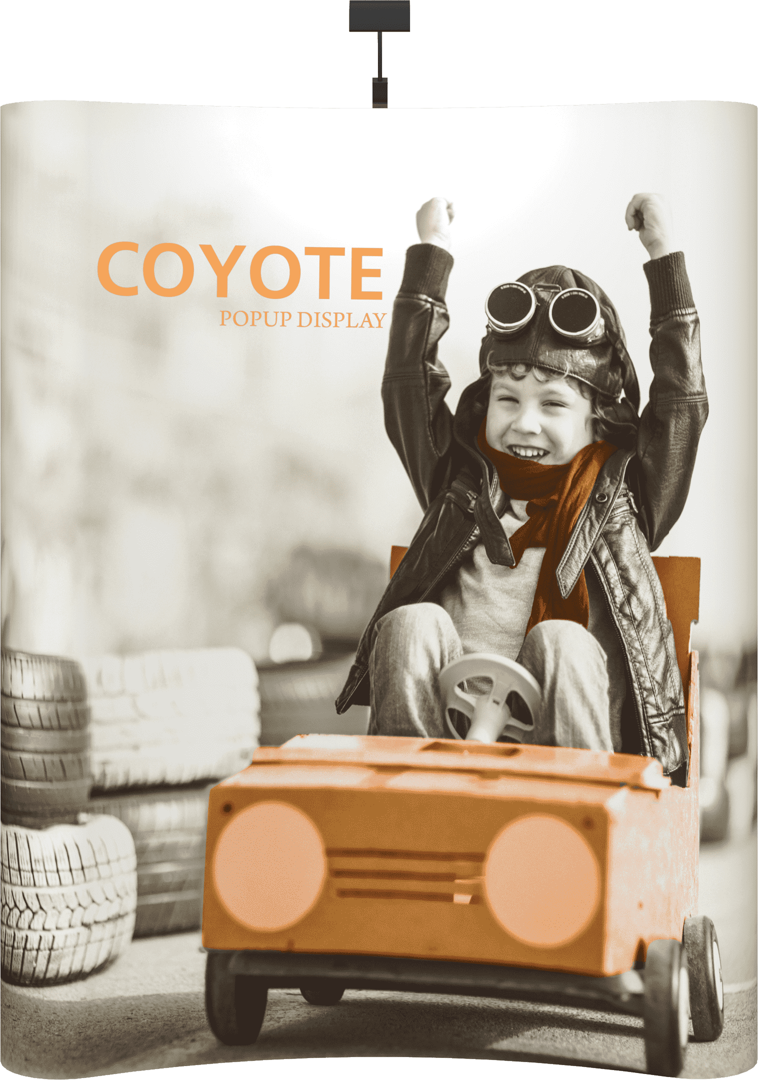 Coyote displays are offered in a variety of sizes and configurations, ranging from 4ft tabletop units to 10ft full height displays available in curved or straight systems, and larger serpentine curved, horseshoe, and gullwing shaped systems. Frames are finished with your choice of either captivating graphic mural panels or versatile hook and loop-friendly fabric panels.