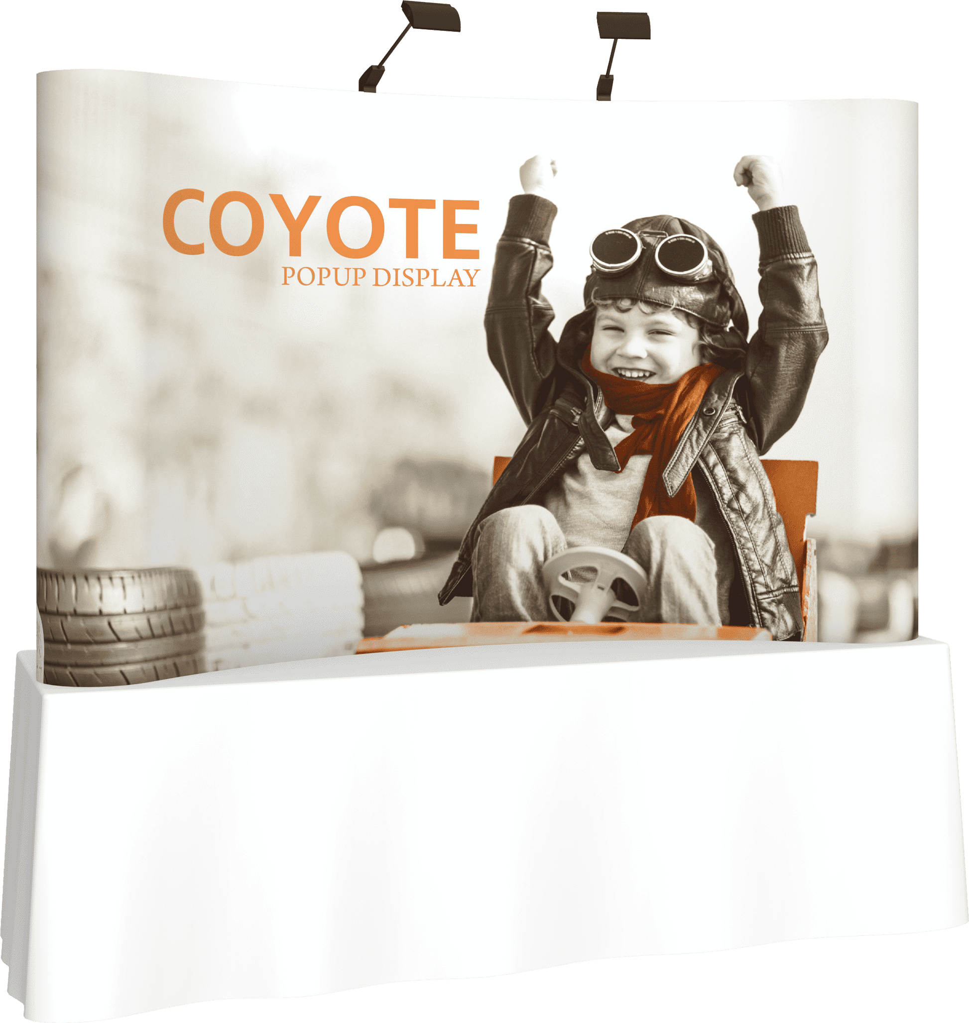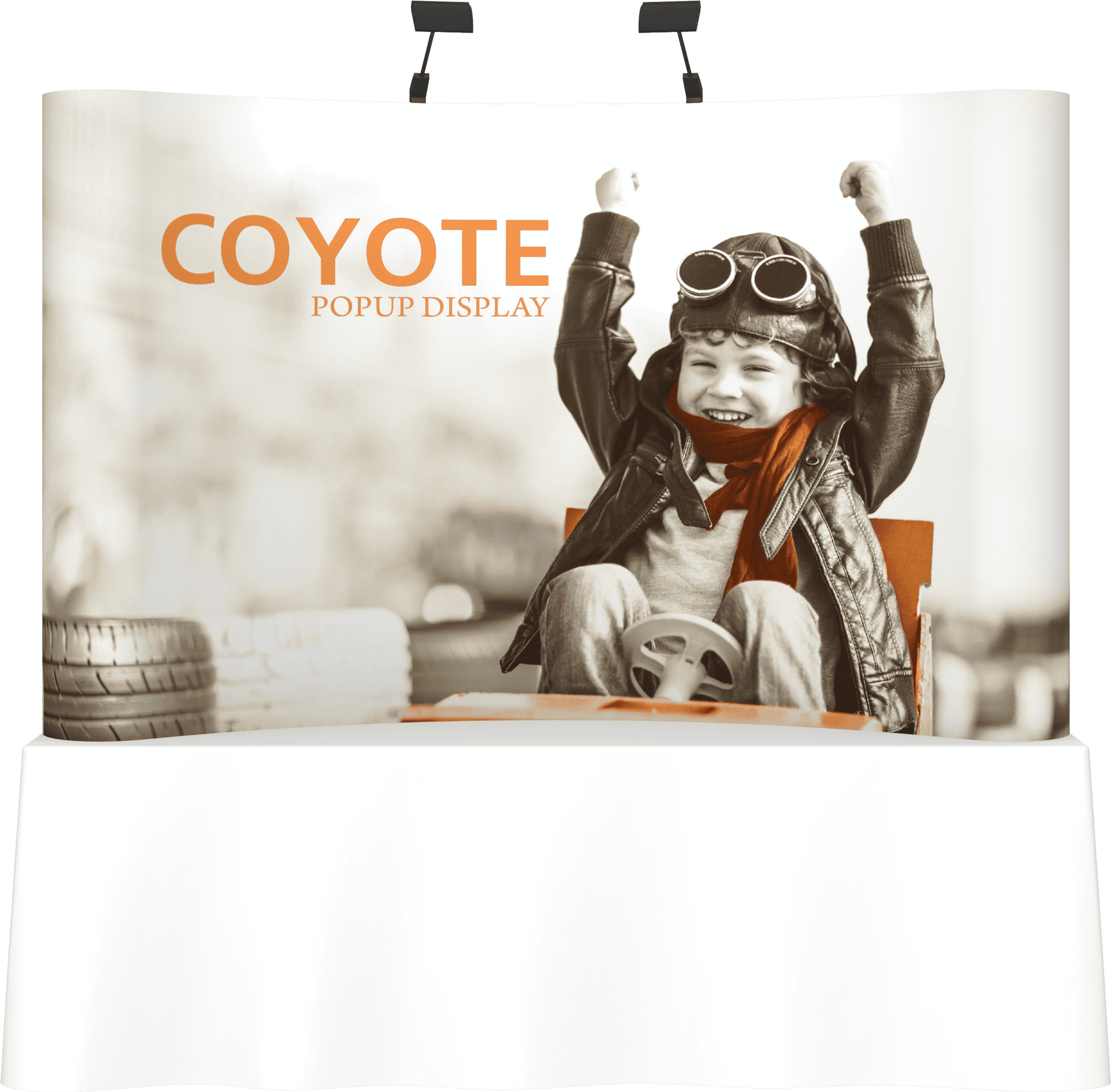 Coyote displays are offered in a variety of sizes and configurations, ranging from 4ft tabletop units to 10ft full height displays available in curved or straight systems, and larger serpentine curved, horseshoe, and gullwing shaped systems. Frames are finished with your choice of either captivating graphic mural panels or versatile hook and loop-friendly fabric panels.