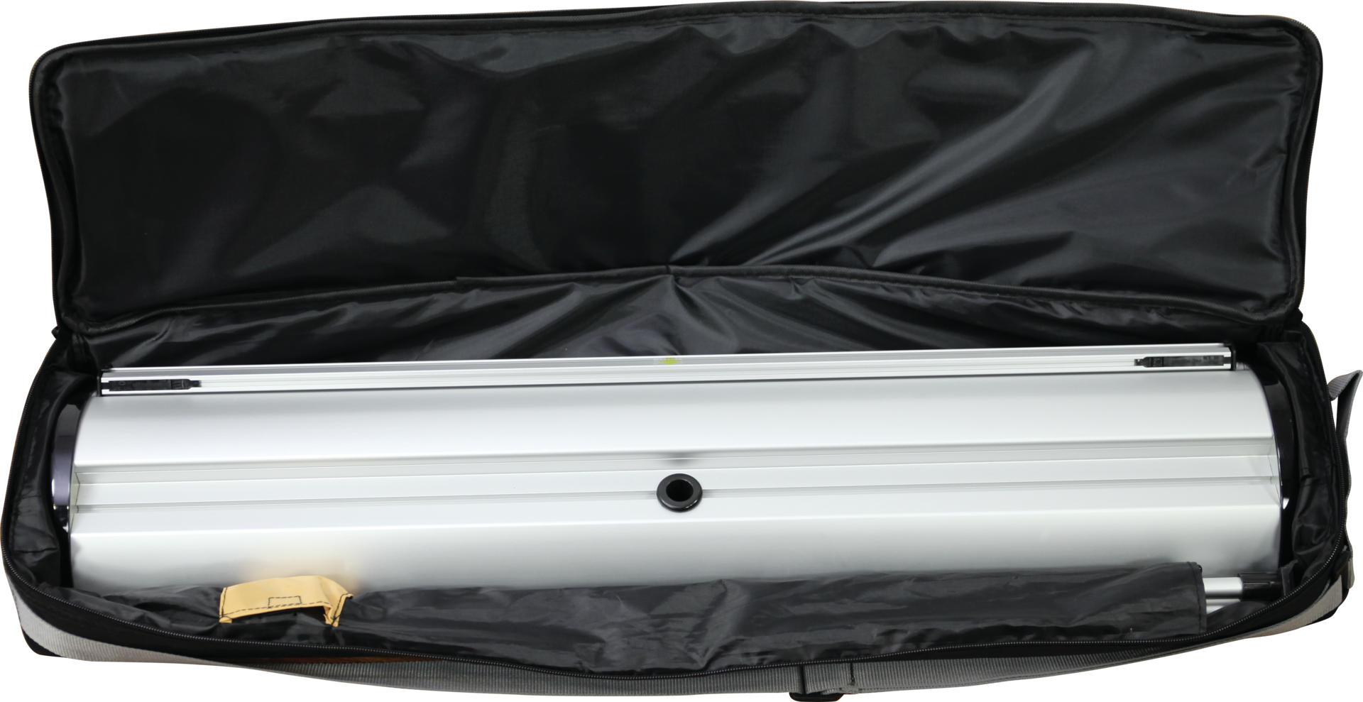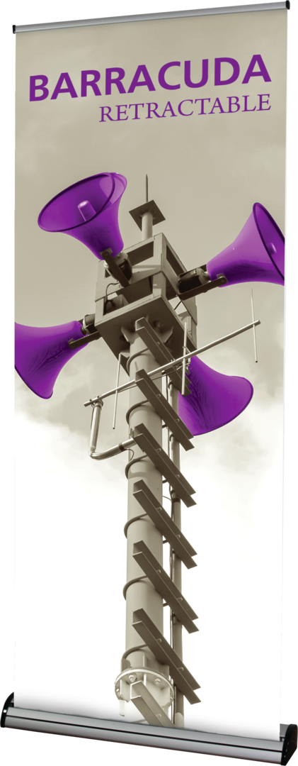 The Barracuda 850 is a deluxe retractable banner stand that is fast, convenient and highly portable. High quality custom graphics roll up from the base, and graphics quickly retract for easy storage and shipping. This premium stand is an affordable option for your display needs. The graphic measures 33.5"W, with a variable graphic height of 60"-83"H.