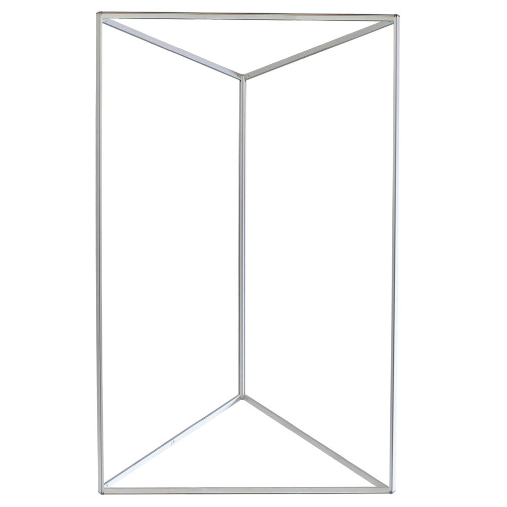 The Big Sky Triangle Tower is part of the Resort Extrusion family aluminum frames for Silicone-Edge Graphics (SEG). Custom-made on the premises, Big Sky Triangle Towers are equilateral triangular prisms at 8 ft. tall and comes in 2ft, 3ft, 4ft, and 5ft widths.