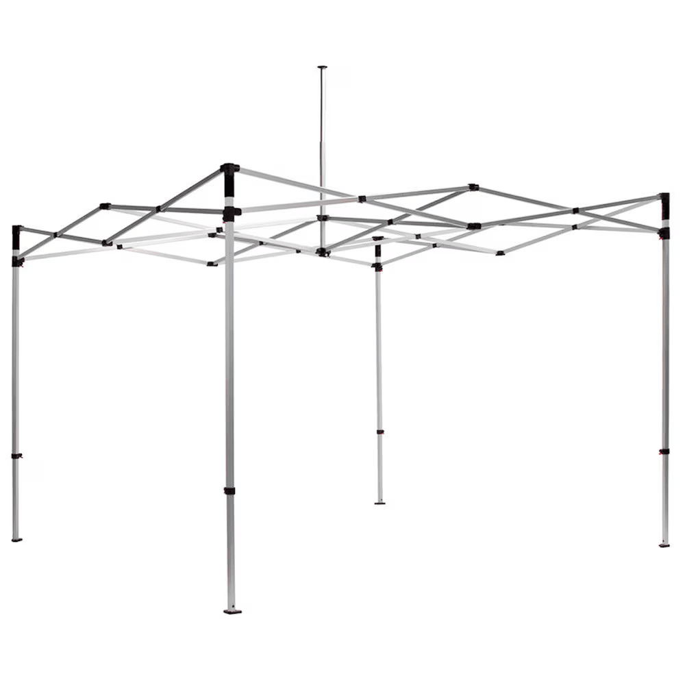 Set up in minutes. First, pull out your canopy and tent frame from the nylon bag. With your frame and graphic upright, pull each leg to expand the frame until the push buttons click into place. Then extend each leg upward until the desired height is achieved. The canopy tent is ready to enjoy!