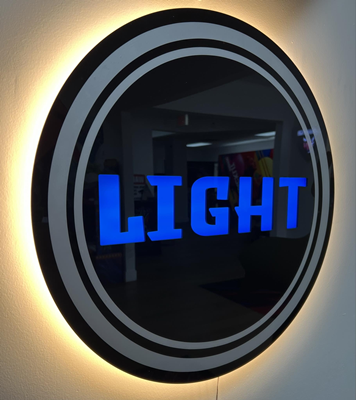 Custom size and shape Lightbox made from front layer acrylic or PVC with the second layer full color printed translucent acrylic with PVC edges. The edges can be any color.
