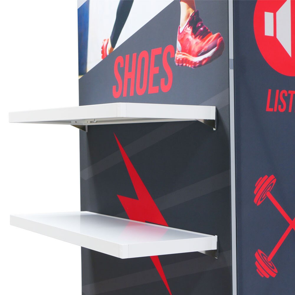 Showcase your products using the Lumiere Light Wall® External Shelf accessory. Attach shelves to your Lumiere Light Wall® by using this kit.