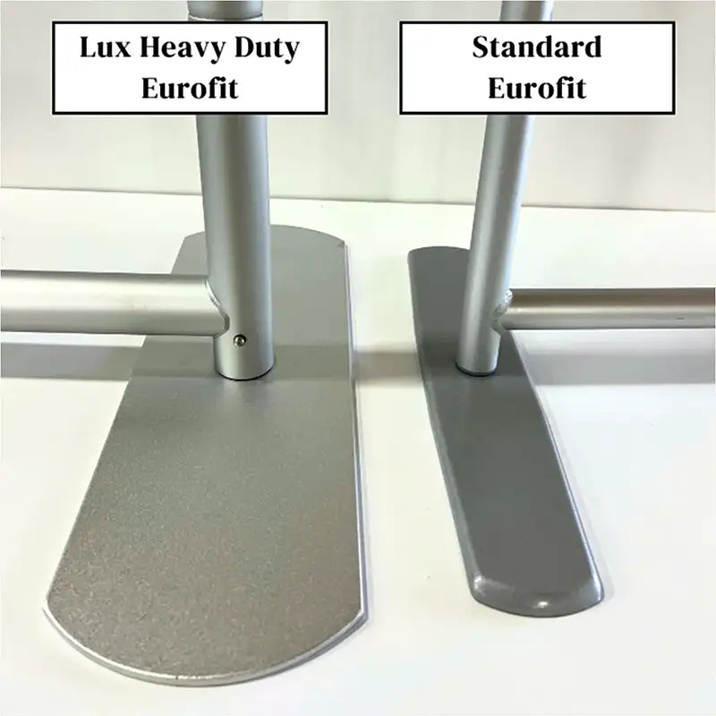Constructed with a heavy-duty aluminum profile featuring a 45mm diameter (compared to the standard 32mm), this display provides enhanced stability and durability. Equipped with extra-large legs measuring 6.5" x 18", it ensures a solid, stable base.