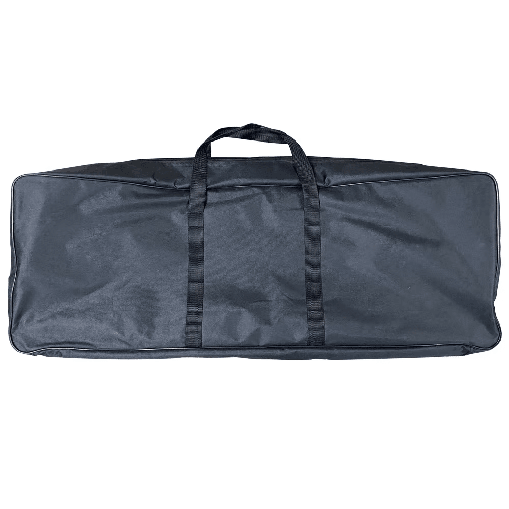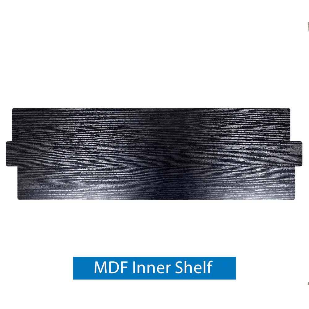 The RPL counter is a quick and simple solution for a portable countertop with fabric graphic display capabilities. Simply pop up the accordion-style frame and connect the plastic locks. The front dye sub-fabric graphic remains attached to the frame, so you only need to secure the end caps to the sides of the counter. The included countertop and inner shelf are made of durable MDF and feature a black woodgrain style finish. An optional dye sub-fabric graphic can be added to the backside to fully enclose the display (The back graphic must be installed last once the frame, front graphic, countertop, and shelf have been set up) The main front graphic with end caps is attached with 2" loop velcro, so it is very easy to change your message at different events. The countertop is hinged so it can fold and pack down into the included travel bag with carry handles.