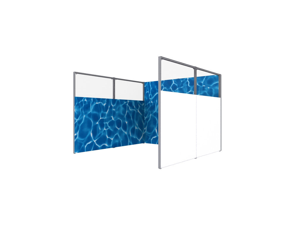 With many wall sizes and connector accessories, effortlessly create numerous configurations that meet your needs. Connector options are either 2 way (90 °) or 4 way (180 °). Available with edge-to-edge custom printed dye-sublimated graphics, TPU plastic for hygienic sneeze guards and partitions or as standard stock white SEG material. Included padded travel bags keep your frames and graphics protected during transport and storage.