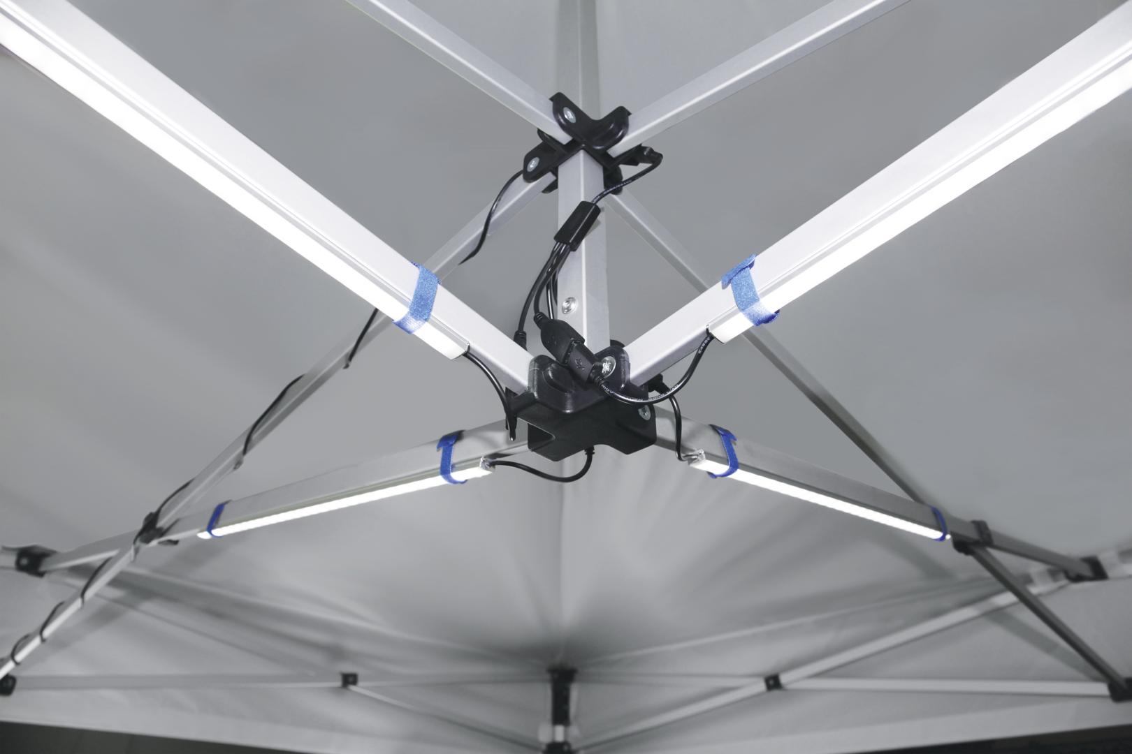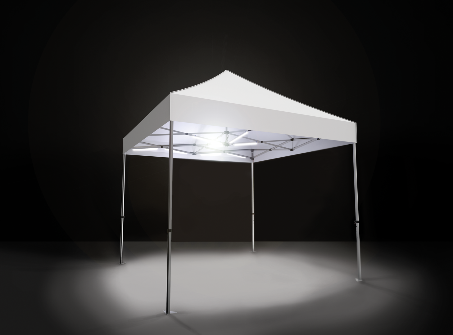 The Zoom Tent Light Kit provides attention-grabbing illumination to popup tents at outdoor venues and events! The Zoom Tent Light Kit is USB battery powered (USB battery/charger not included) and the lights include built-in magnets for quick connection to steel frames and a hook & loop for connection to aluminum frames. Lights attach to the frame easily. Compatible with most 5ft, 10ft, and 20ft tents. Battery-USB charger not included.